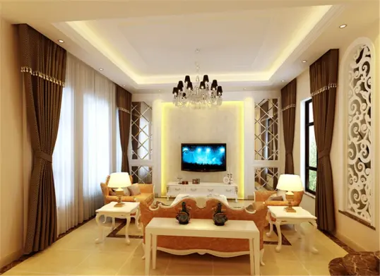 客厅有欧式吊灯,和灯带的运用,就是在晚上开上灯,有身在东方也能领略西方风采。