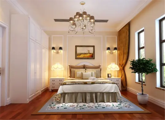 卧室有两个大窗户,采光非常好。色彩以浅色调为主,使卧室清新舒适浪漫温馨。