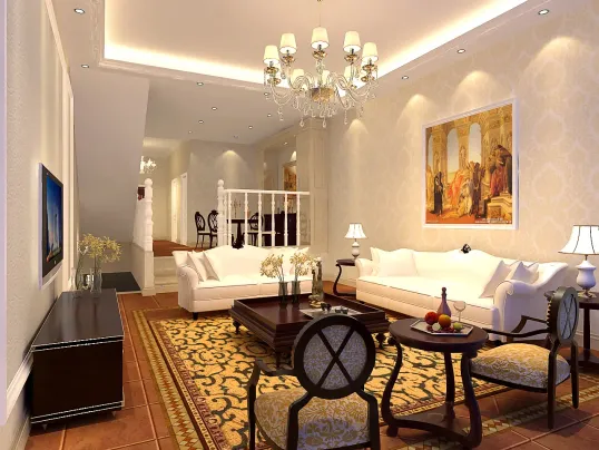 京城雅居别墅250平简欧风格设计方案客厅设计 在别墅的设计中没有太多的复杂的肌理与装饰,简单的欧式风情就足以让我们能感受到优雅的氛围,让简欧的感觉包围着我们,使得整体效果比预想的还要好。在别墅中尽量采