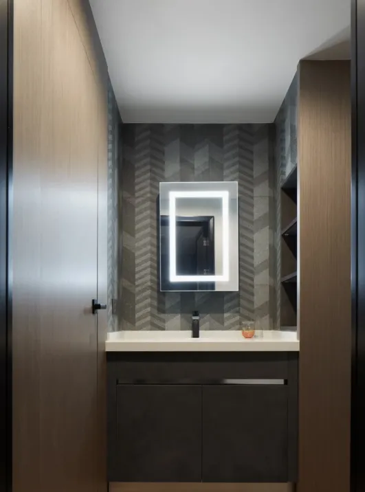 玄关镜面背景延伸了空间,也阻挡了门口通透的视线