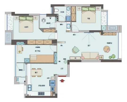 原始户型的北阳台空间浪费,没法充分利用,另外还有一部分过道利用率低,改造后空间利用更合理,区域划分明确