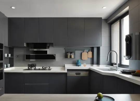 厨房橱柜依然是主题的深灰色,既深沉又有仪式感,让做饭不单调
